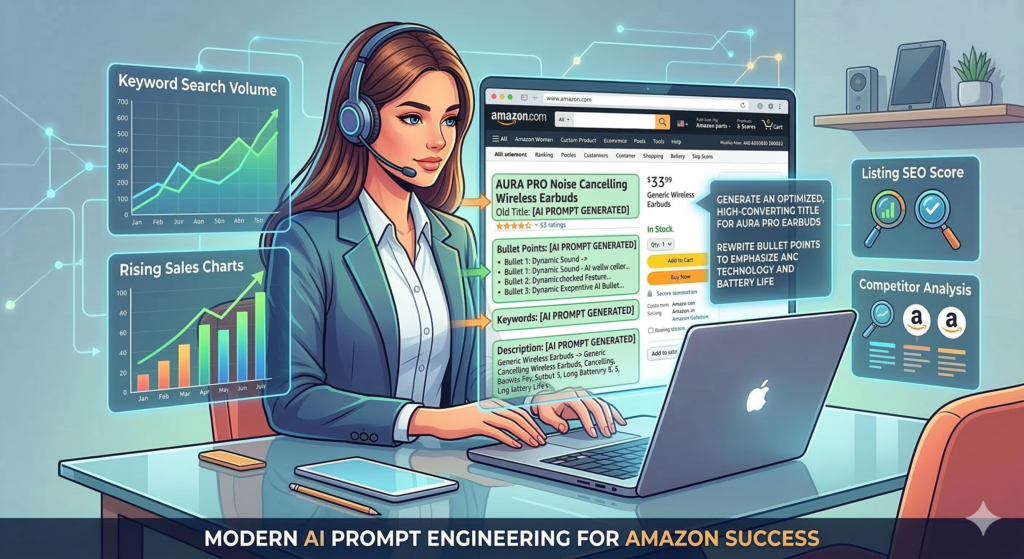 Selling on Amazon has become more competitive than ever. Thousands of sellers compete for the same keywords, and the difference between a product that sells and one that sits unnoticed often comes down to the listing itself. That’s why smart sellers now rely on AI prompts for Amazon product listings to write better titles, bullet points, and descriptions. By using strategic AI prompts for Amazon product listings, sellers can create SEO-optimized listings that attract clicks, improve ranking in Amazon search results, and convert shoppers into buyers.